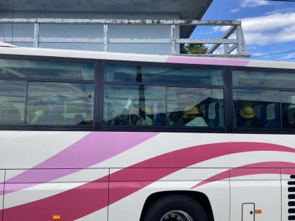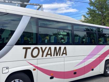 ガラス美術館・市立図書館招待プログラムに参加するために、学校を出発しました。