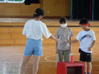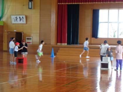 色団ごとの縦割り班で、上学年と下学年のペアで借り物競走をするという、わくわくするようなイベントです。