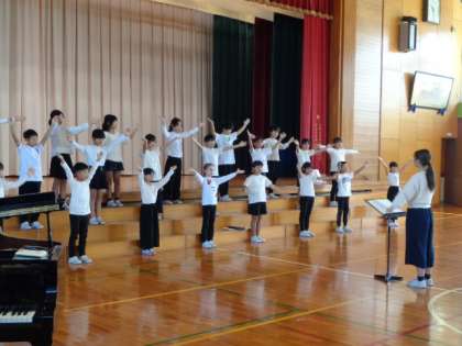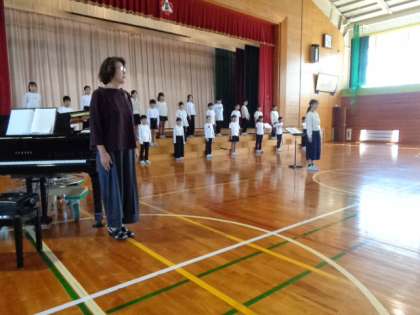 今日は校内発表会で、全校児童にこの時点での合唱を聴いてもらいました。