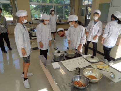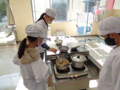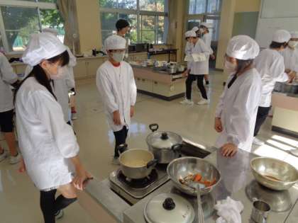 家庭科の調理実習で、ご飯と味噌汁の炊爨に挑みました。