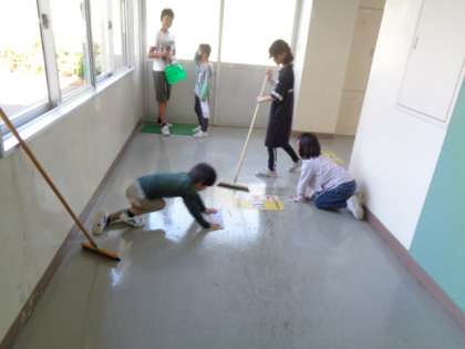 2枚目。これも1年生と2年生のぞうきん掛けの連携が見事でした。