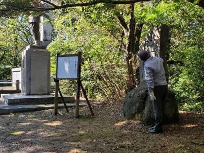 眺めを楽しみつつ、佐伯有頼、大伴家持などの歴史事象、古代から歌われている呉羽山からの月と今見える月の対比、土壌を組成している、円磨によって丸くなった石への気付きなど、豊かな学びの要素を堪能させていただいているようです。