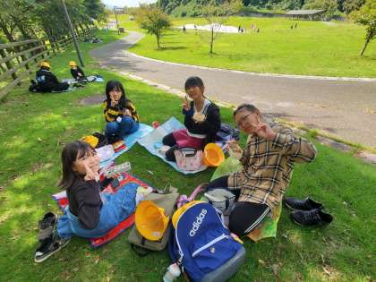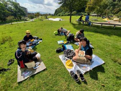 五福の呉羽丘陵多目的広場で昼食です。