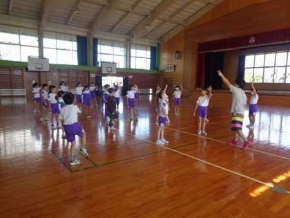 じゃんけんゲームをした際に、勝ったら体全体を使って思いきり喜ぶことのトレーニングを行いました。初めの身体表現は小さかったですが、続ける内に大きく表現できるようになりました。どの子も笑顔で活動することができました。