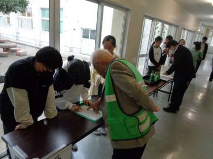 6年生がお出迎え、受付業務をしている様子です。