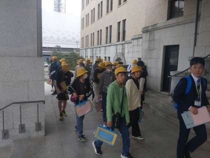 県庁に到着。見学が始まっています。