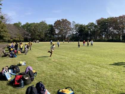 学習を終え、呉羽山公園で気持ちよく遊んでいます。
