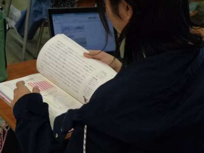 講師の先生に国語科の授業の様子を見ていただきました。「固有種が教えてくれること」