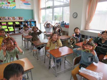 初めてのグルーガンに少し緊張気味の子供たちでしたが、すぐに慣れてきてしっかりと付けることができました。