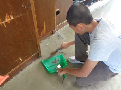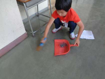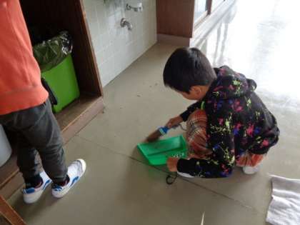 長岡小学校の縦割り清掃において必ず継承されるのは、画像の小ぼうきの使い方です。