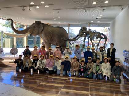 マンモスの前で記念撮影です。