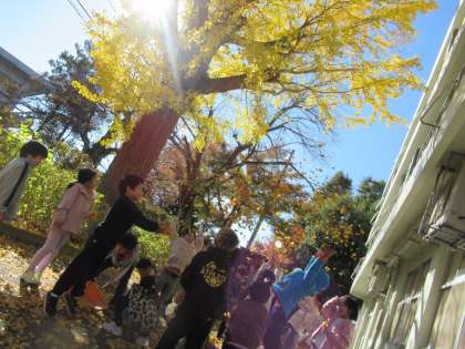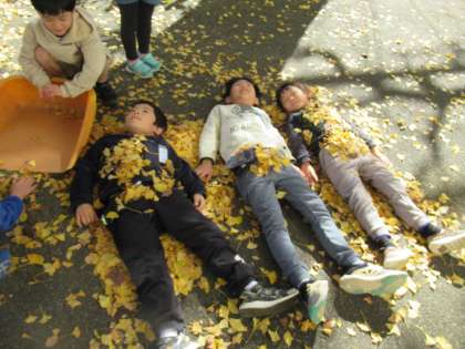 そして、最後は「落ち葉のシャワーあそび。」