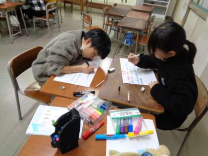 総合的な学習の時間の発表ワークショップに向けて、グループごとに準備を進めていました。