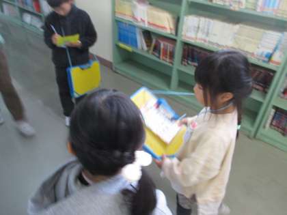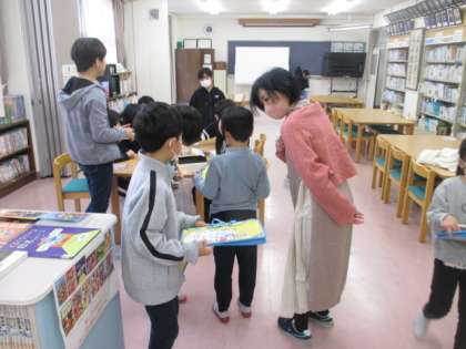 クイズに10問に答えた子には、「1冊貸し出しプレゼント券」が進呈される、という企画もあって、多くの子が楽しんで参加していました。