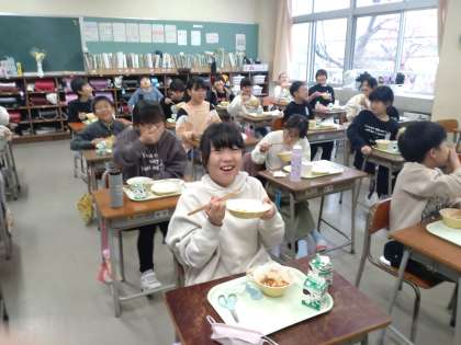 4年生は、向かい合わせで食べるのは、月・水・金曜の週3回にしているようです。