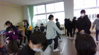 お楽しみ会前半は、白団企画の「射的」、黃団企画の「フルーツバスケット」です。計画・準備・運営は子供たちが行っています。その場に応じて臨機応変に遊び方等を工夫する姿が見られます。