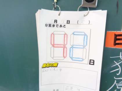 卒業までの「日めくりカレンダー」がつくられ、カウントダウンが刻まれているのでした。
