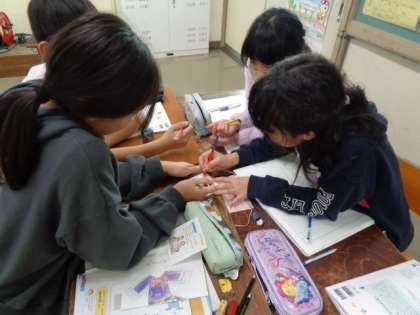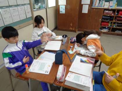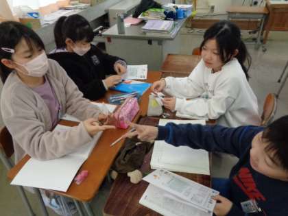 操作活動を通して面積の概念への理解を深めるために、陣地取りゲームを実施していました。