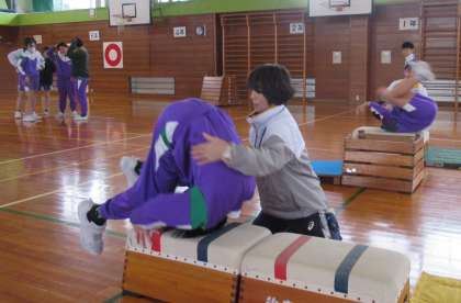 6年生は「台上前転」を運動の中心に据えてご指導いただきました。どの学年もワザのテクニカルポイントを丁寧に分かりやすくご指導いただき、1日ですごく上達しました。画像にもその様子がとても表れていると思います。