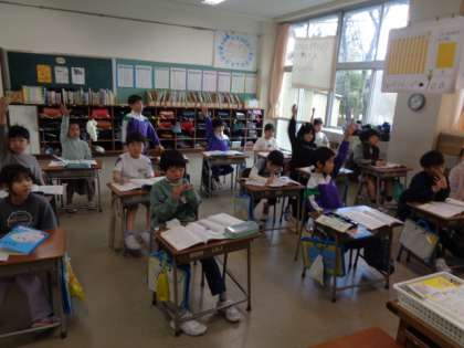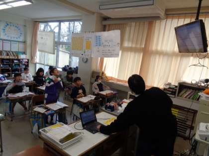 10000までの大きな数の仕組みや記数法を理解した子供たち。位を意識して唱えたり、数直線上で大きさを確かめたりしていました。テンポよく楽しく学習が進んでいました。