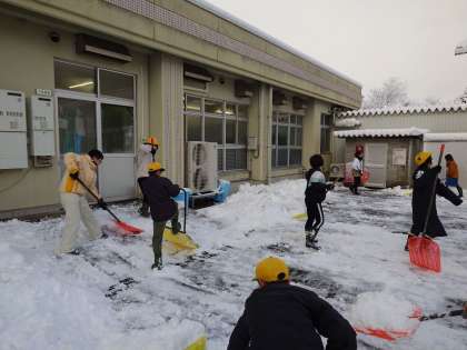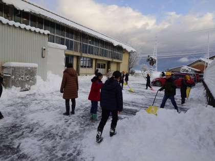 たくさんの降雪があった日は、5,6年児童の手を借りて除雪を行うことになっています。5年生は給食物資の搬入路を空けるための作業に取り組みました。どの子も張り切って取り組み。おかげで今日もおいしい給食がいただけました。5年生のみなさん、ありがとう!