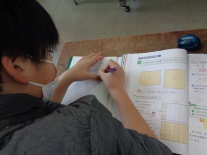 1つの辺の長さが分かると、面積が調べられるという特徴に気付き、どんな場合でもあてはまる「公式」を導き出しています。