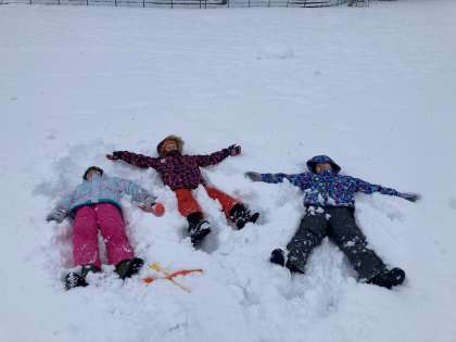 今日の4年生は「体育に親しむ日」です。まずは雪と存分に親しみました、