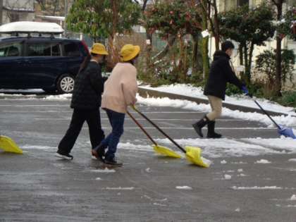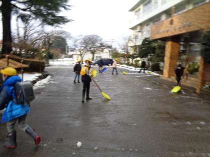 でも、今日も6年生が自主的に児童玄関前の雪を取り除いてくれました。