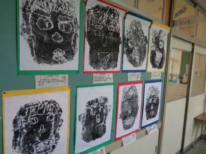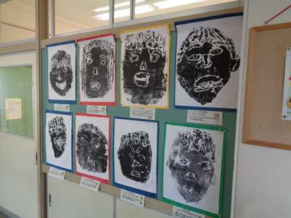廊下に紙版画で作った作品が一斉にお目見えしました。