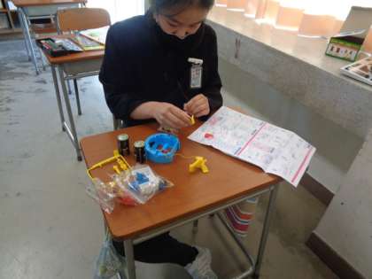 電磁石の性質について学んでいる子供たち。今日は、その仕組みを言語化することに挑んでいました。いろんな方法で追究しています。