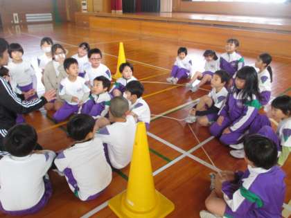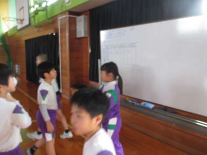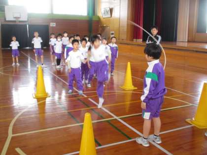 大縄で跳ぶ回数が増えるように、練習の方法を工夫しながら探究しています。
