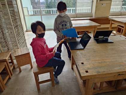 練習の様子を動画に撮り、チャットに掲載することで、クラスの全員が参照することができるので、すぐにリアクションが帰ってきます。チャットスペースの利点をすばやく理解し、効果的に使い始めている3年生でした。