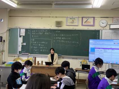 学習内容「側面、頂点、辺の数等に着目して、角柱や円柱の立体の性質を調べる。」