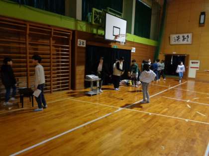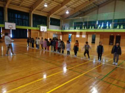 体育館をのぞいて見ると、1年生と5年生が明日に備えてリハーサルを行っていました。