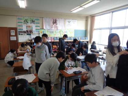 テストの難問について「なぜそうなるのか」互いに説明し合う活動に取り組んでいます。