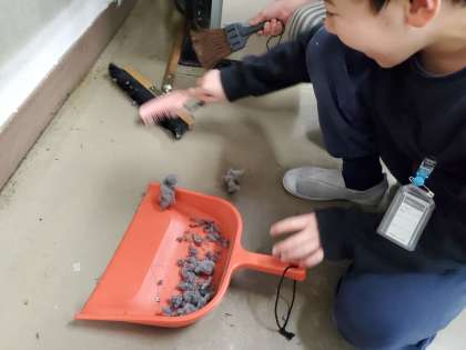 放課後には年に1度のワックス掛けがあります。