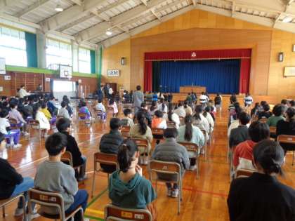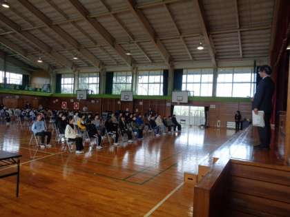 卒業式の全体練習を行いました。20分弱の練習に精選して、今日と来週月曜日の2回だけ全体で集合して練習します。