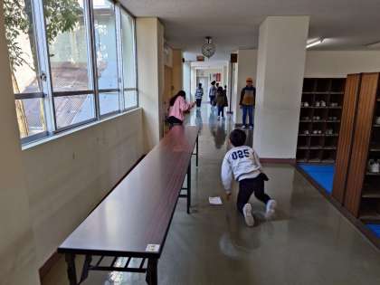 6年生が下校した6限目。4,5年生が力を合わせて卒業式の前日準備に取りかかりました。
