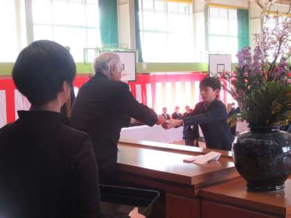 祝辞はPTA副会長様に、記念品贈呈は教育後援会長様にいただきました。