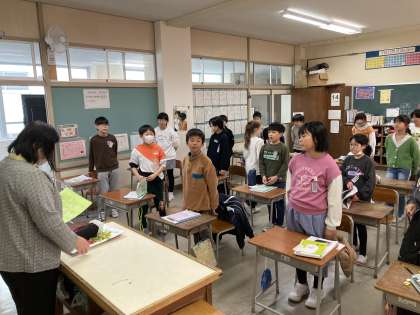 理科の先生との最後の授業でした。1年間、楽しく、分かりやすい授業をしていただきました。子供たちが感謝の手紙を渡し、お礼を述べました。