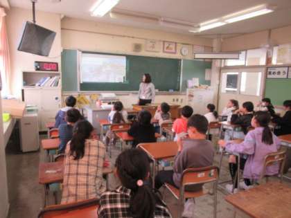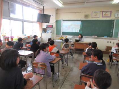 初めての「外国語」の授業です。英語専科の先生との会話を楽しんでいます。
