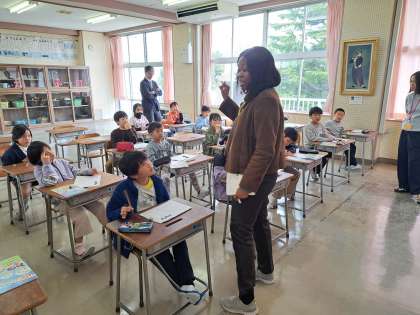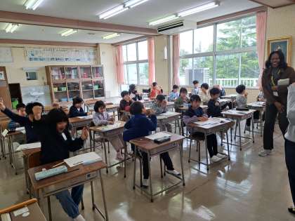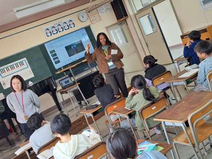 英語や外国のことについて、興味を持っている子が多く、英語専科の先生やALTの話を熱心に聞きながら、楽しく活動していました。