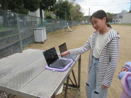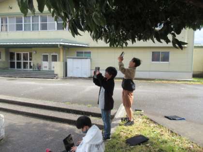 雲の量、形、動きなどに注目して観察しています。