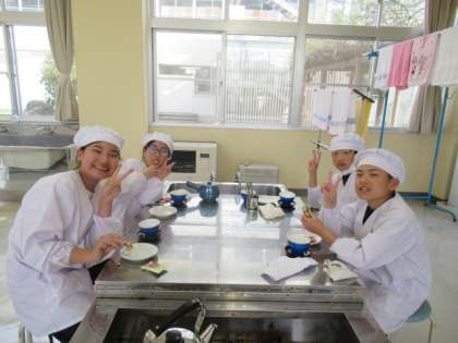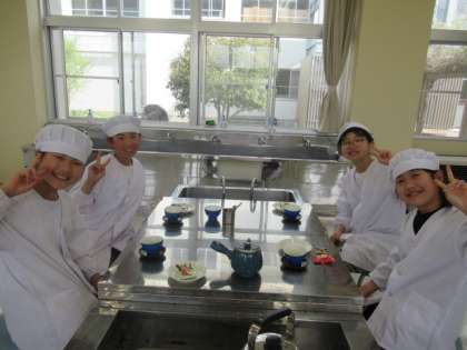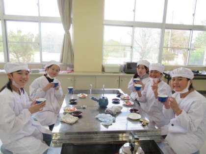 初めての家庭科です。味わいながら飲んでいます。会話もはずみました。