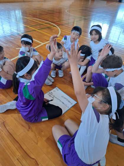 今日は、各学年のリーダーを中心に、団のめあてや作戦を話し合いました。