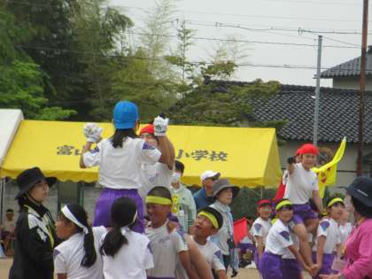 高学年の団体競技は、騎馬戦です。今年は、予行は乱戦のみ。本番は一騎打ちのみを行います。