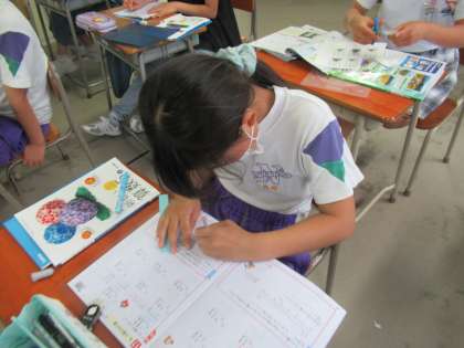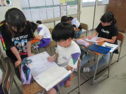 自分の進度に合わせて、学習を進めています。自分の課題が終わった人は、友達に教えています。