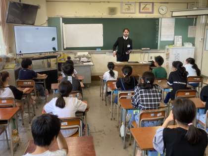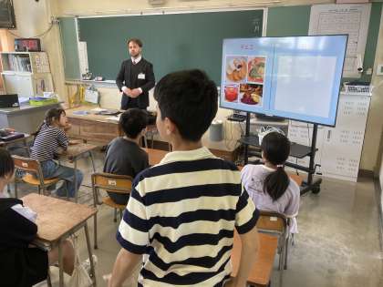 チェコのミレル・ロビンさんをゲストティーチャーとして迎え、5・6年生が国際理解教育「日本と外国(チェコ)を比較して、様々な考え方を学ぼう」を学習しました。ロビンさんは、富山ガラス造形研究所に勤務されていた父親らと共に富山市に移住し、2012〜2016の4年半を過ごしました。自然や食文化、伝統等の話を通して、子供たちは、日本との違いや同じ点について知り、視野を広げることができました。