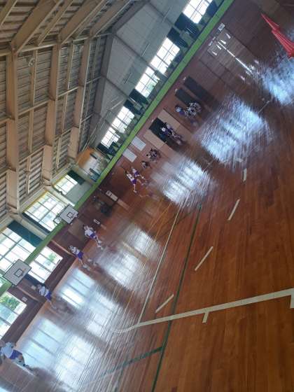 体育では、今年度最後(になるであろう)シャトルランに取り組みました。走り方や呼吸のしかたを確認し、力を出し切ろうとがんばって走りました。