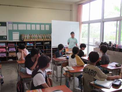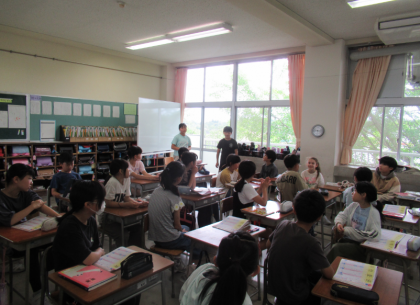 授業の初めに古典や詩の暗唱をしています。緊張しながらもみんなの前で発表する人、それに聞き入る人、みんなで聞き合う心地よい時間です。
